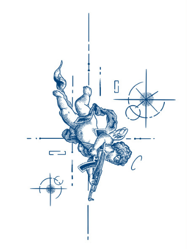 קיופיד עם רובה, דמות שמערבבת בין אהבה למאבק. הוא מייצג תשוקה עזה לצד כאב של אהבה שנלחמה על מקומה.