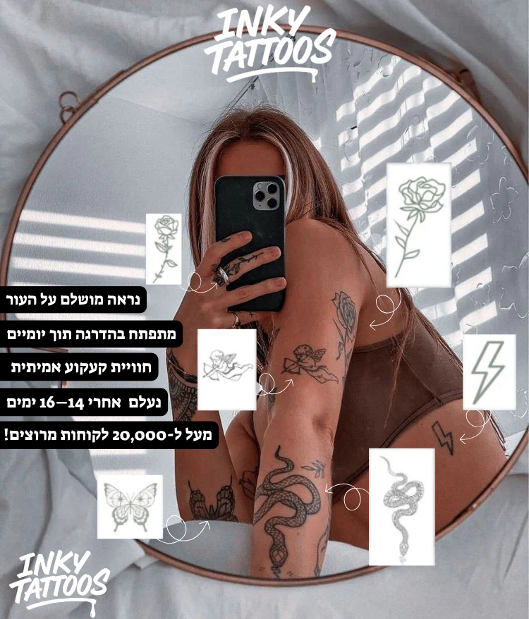 Inky Tattoos הם קעקועים זמניים שנראים אמיתיים ונשארים על העור כשבועיים.
